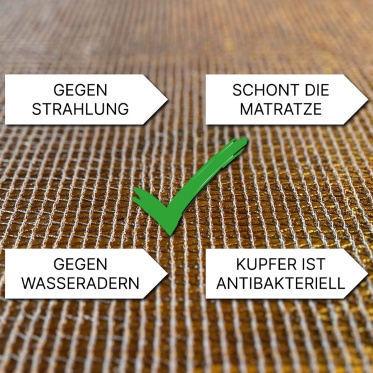 Das Kupfersperrgitter wirkt wie ein natürlicher Faradayscher Käfig und lenkt Strahlung – insbesondere Wasseradern, Erdstrahlen und Elektrosmog – zuverlässig um.